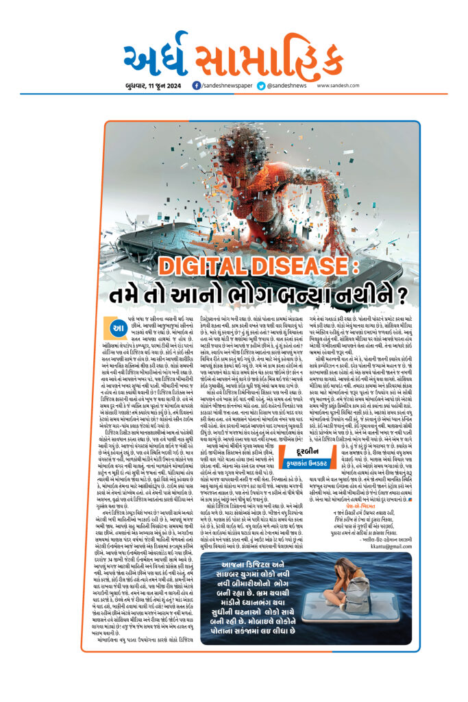 ડિજિટલ ડિસીઝ સામે માનસશાસ્ત્રીઓ આમ તો પહેલેથી લોકોને સાવધાન કરતા રહ્યા છે, પણ હવે પાણી નાક સુધી આવી ગયું છે. આજનો યંગસ્ટર્સ મોબાઇલ લઇને જ બેસી રહે છે એવું કહેવાતું રહ્યું છે, પણ હવે સ્થિતિ બદલી ગઇ છે. માત્ર યંગસ્ટર્સ જ નહીં, બાળકોથી માંડીને મોટી ઉંમરના લોકોને પણ મોબાઇલ વગર નથી ચાલતું. નાનાં બાળકોને મોબાઇલમાં કાર્ટૂન ન મૂકી દો ત્યાં સુધી એ જમતાં નથી. ઘોડિયામાં હોય ત્યારથી એ મોબાઇલ જોવા માંડે છે. વૃદ્ધો વિશે એવું કહેવાય છે કે, મોબાઇલ તેમના માટે આશીર્વાદરૂપ છે. ટાઇમ ક્યાં પાસ કરવો એ તેમનો પ્રોબ્લેમ હતો. હવે તેમની પાસે મોબાઇલ છે. અલબત્ત, વૃદ્ધો પણ હવે ડિજિટલ આદતોના કારણે ચીડિયા અને ગુસ્સેલ થતા જાય છે.