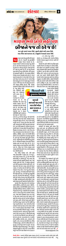(`સંદેશ’, `સંસ્કાર’ પૂર્તિ, તા. 07 ડિસેમ્બર 2025, રવિવાર. `ચિંતનની પળે’ કૉલમ)
